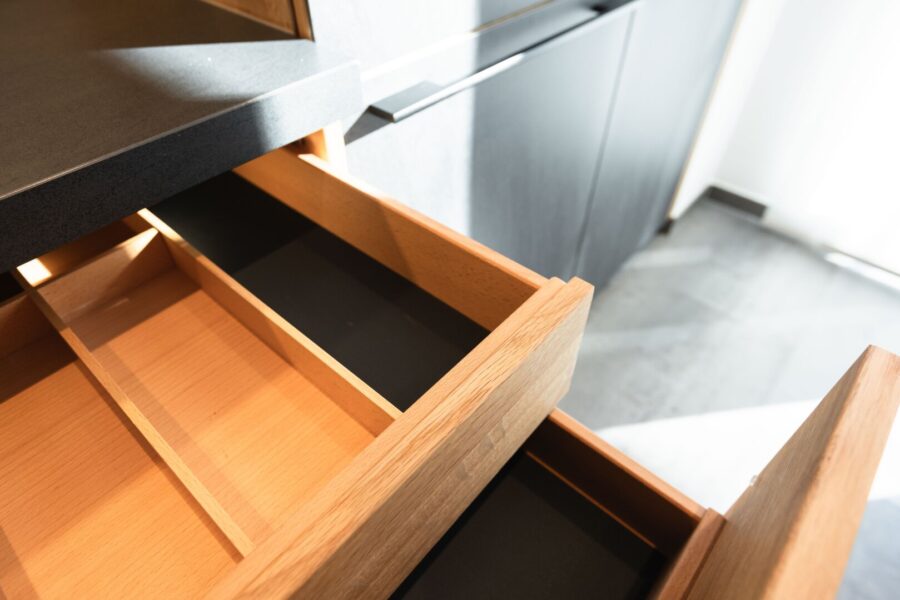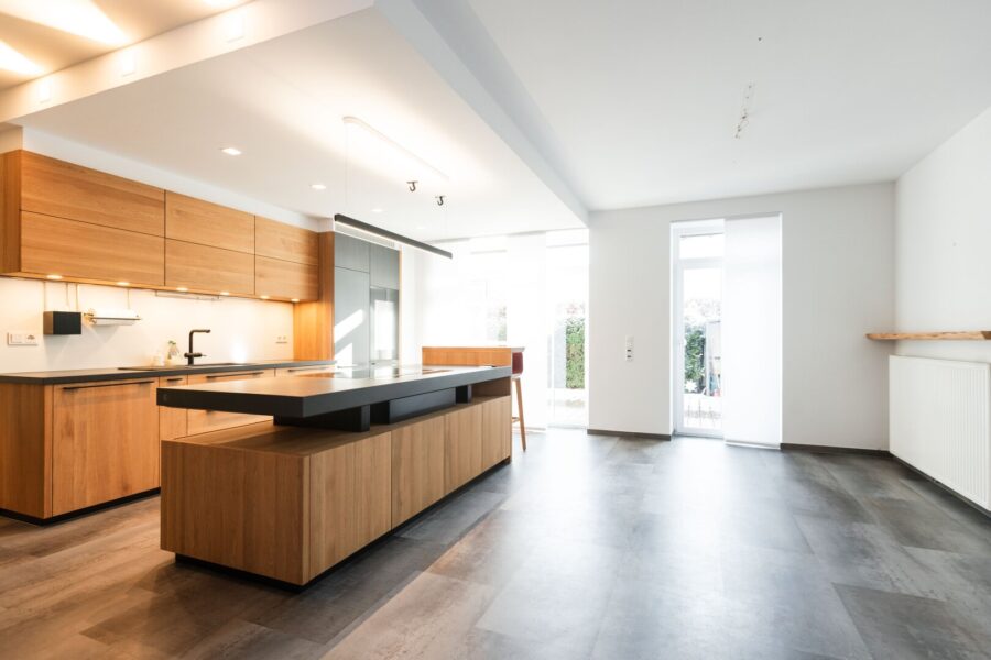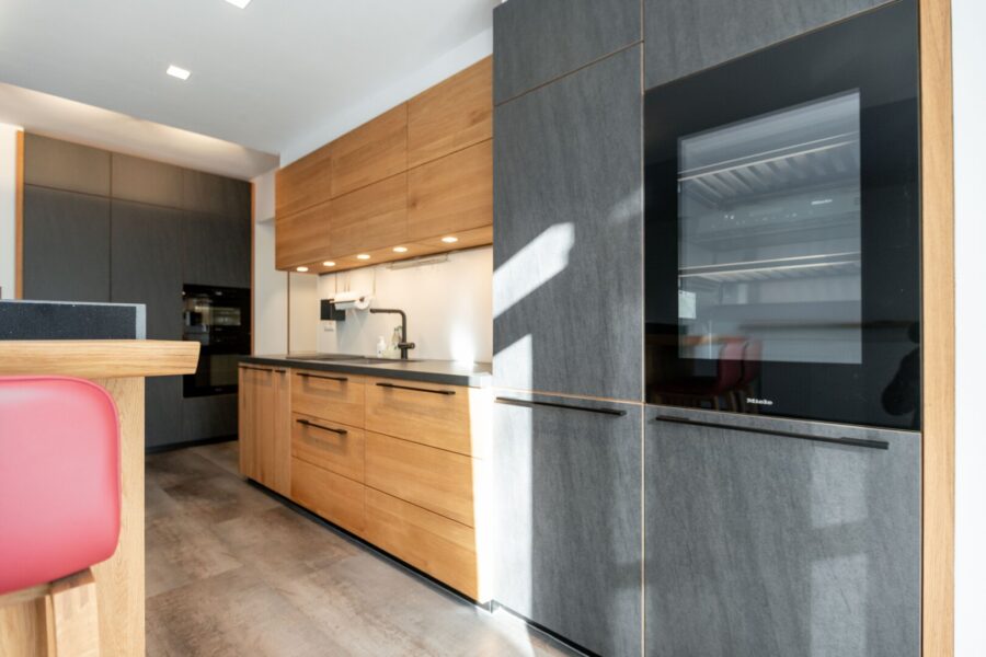 Die Team 7 Echtholzküche mit Keramikoberflächen und einer höhenverstellbaren Kochinsel ist ein Traum für jeden Hobbykoch.