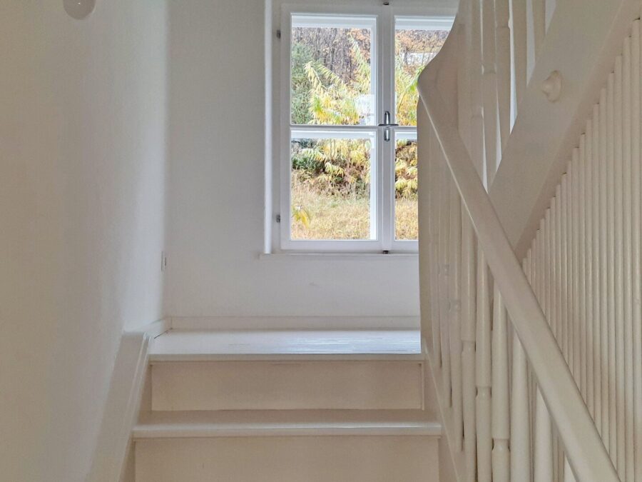Das ausgebaute Dachgeschoß mit großen Fenstern und Blick auf den See bietet ein außergewöhnliches Wohngefühl. Es verfügt auch über ein Bad mit Wanne und ein separates WC.