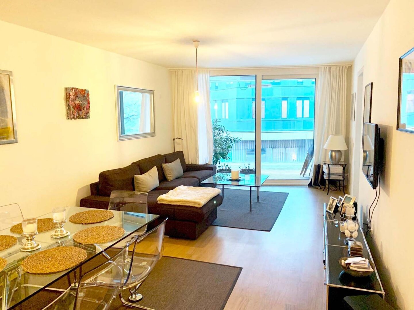 Auf rund 60 m² Wohnfläche überzeugt die Wohnung durch eine klare Raumstruktur und die optimale Ausnutzung jedes Quadratmeters. Der offene Wohn- und Essbereich bildet das Herzstück der Wohnung und besticht durch seine Helligkeit sowie den direkten Zugang zur großzügigen, ca. 20 m² großen Terrasse. Diese erweitert den Wohnraum ins Freie und bietet ideale Voraussetzungen für entspannte Stunden oder gesellige Abende.