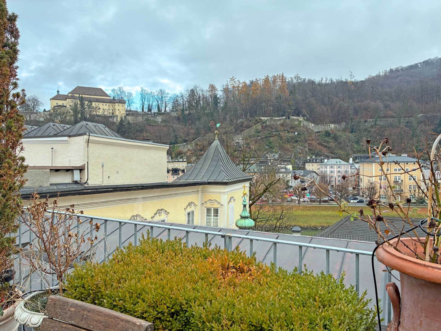 Dazu kommt als absolutes Highlight noch eine traumhafte Dachterrasse mit einer Fläche von ca. 60 m², die exklusiv zur Wohnung gehört, direkt begehbar ist und von der man einen traumhaften Ausblick sowohl auf die Altstadt als auch über die Salzach und auf die umliegende Landschaft hat.